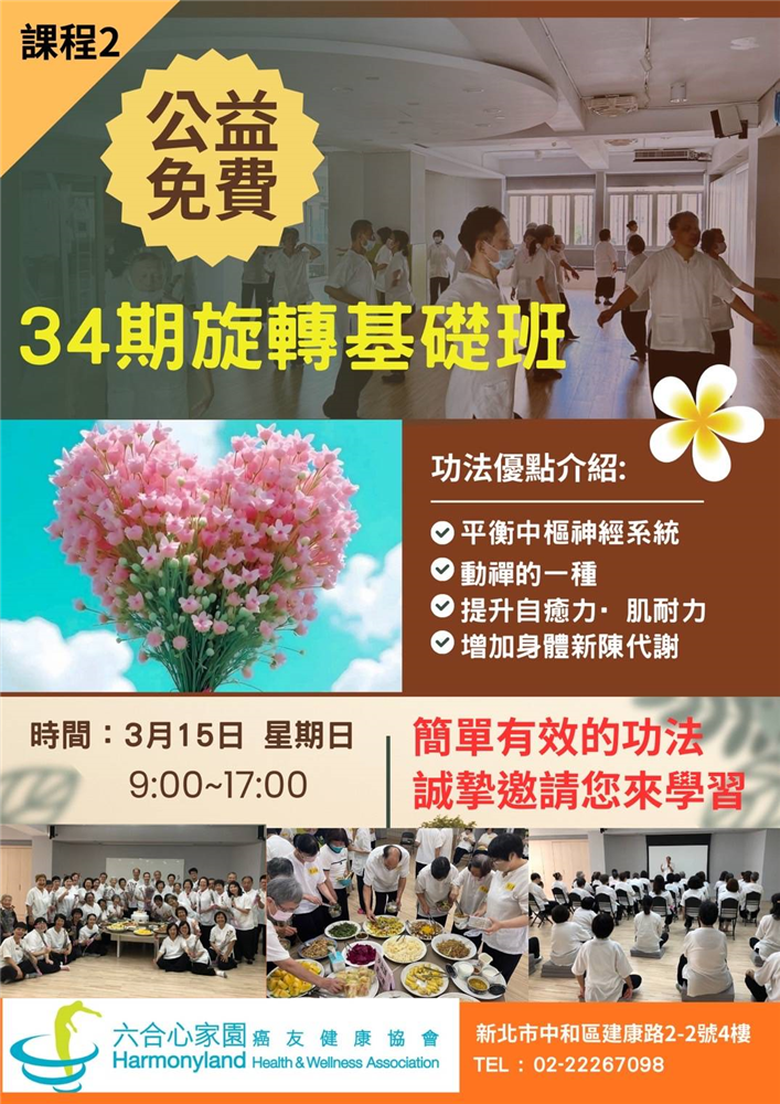 六合旋轉、靜坐、慈愛手、身心靈講座、登山、戶外活動、手工藝DIY(養生素食)